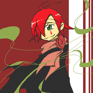 この子、目の色が緑で髪の色とか着てるものとかが赤で